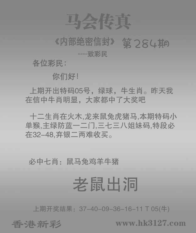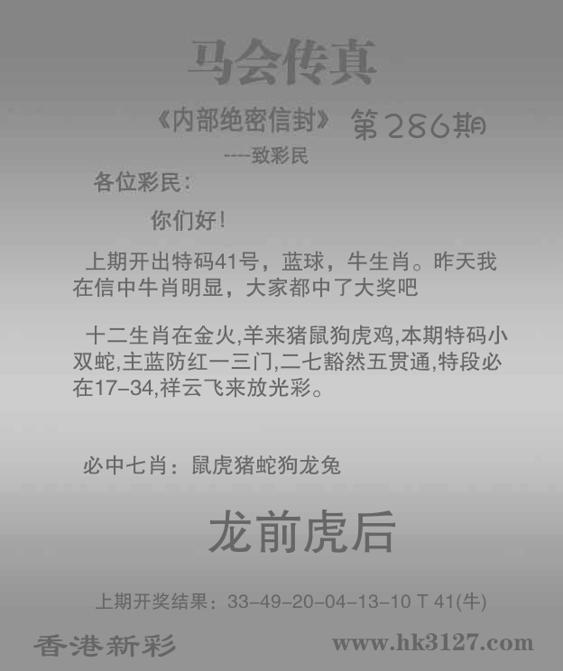 285期: ⑦肖 | 龙猪鼠兔蛇鸡马 | 牛41中 |
