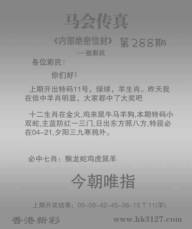 288期: ⑥肖 | 狗猴蛇虎马猪 | 羊23中 |