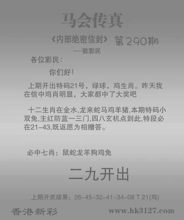 291期: ④肖 | 鸡牛狗鼠 | 猪43中 |