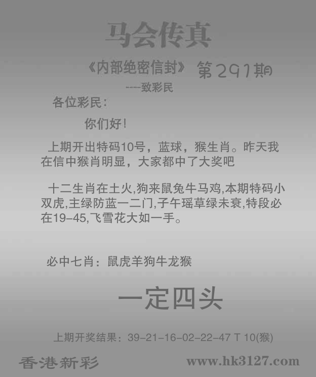 290期: ④肖 | 鼠虎狗猴 | 猴10中 |