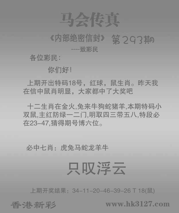 293期:公式四肖 | 293期:公式三头 | 293期:公式杀肖 |